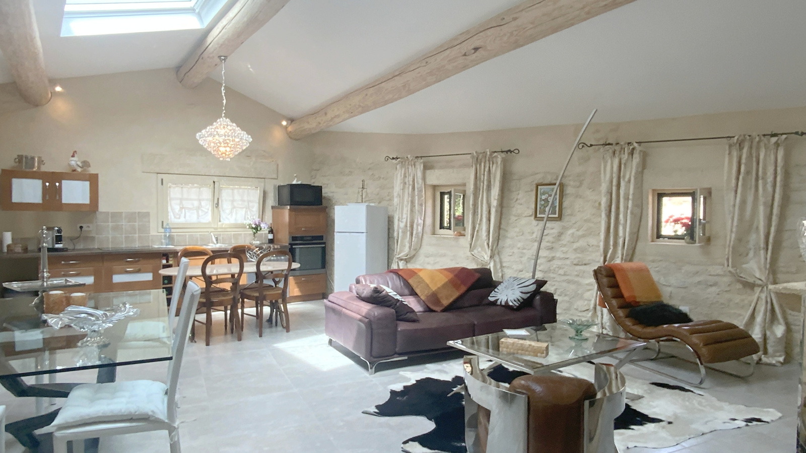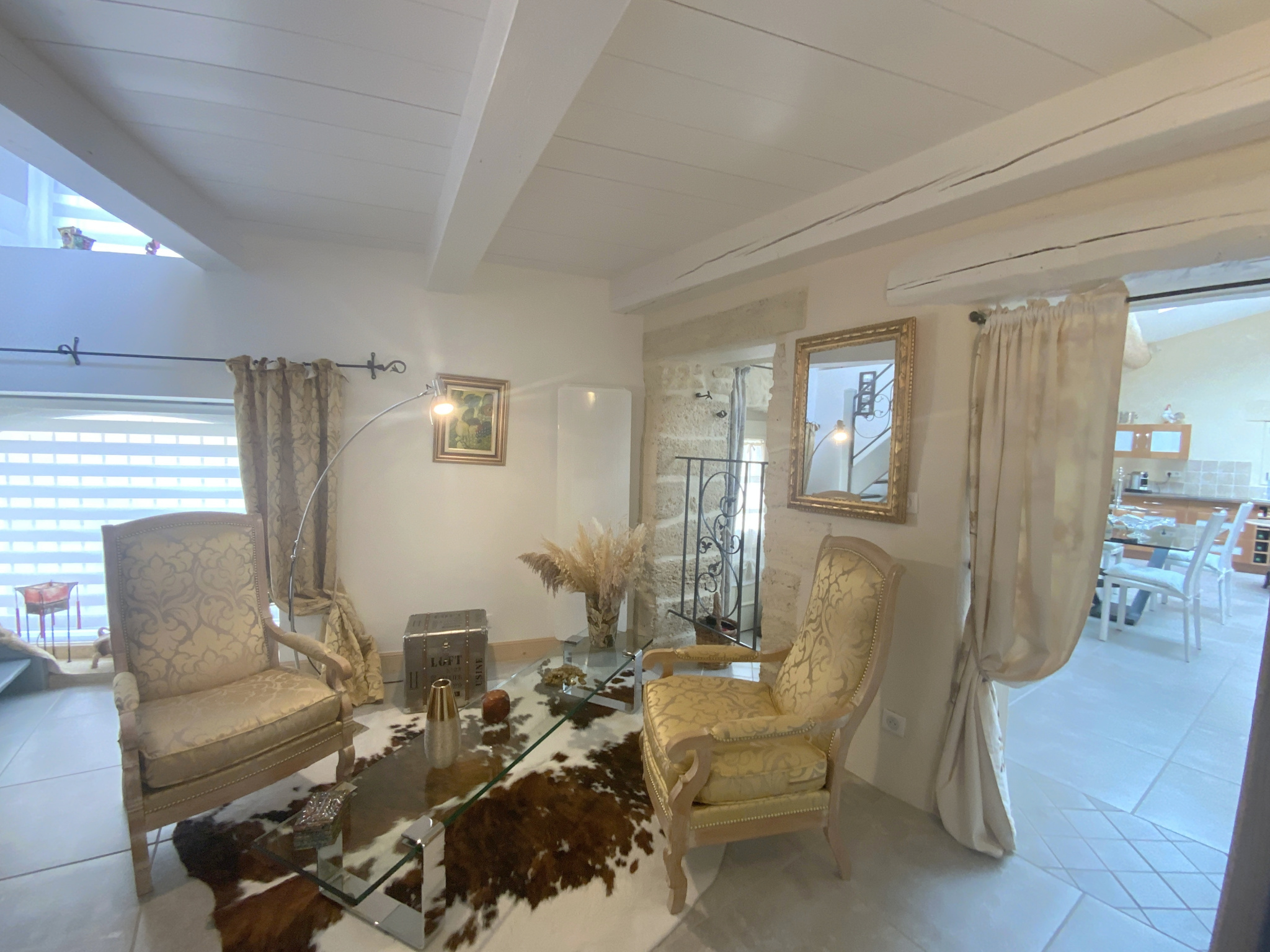 Dans un village recherché à 6 km d'Uzès, l'agence Sindy Micots Immobilier vous propose cette charmante maison de village en pierre, entièrement rénovée avec des materiaux de qualité et beaucoup de gout. Des l'entrée, une pièce de vie de près de 50 m2 avec hauteur sous plafond de 4 m et une belle luminosité. Salon avec cheminée, cuisine équipée. Un boudoir pouvant accueillir un bureau , permet d'accéder à 2 chambres et une vaste salle d'eau. A l'étage, toujours une luminosité dominante, vous trouverez une suite parentale avec salle de bains et accès direct sur une belle terrasse tropézienne. En complément, un garage de près de 100 m2 avec porte automatique vous offre de nombreuses possibilités. De nombreuses prestations: Climatisation, cheminée, double vitrage aluminium...