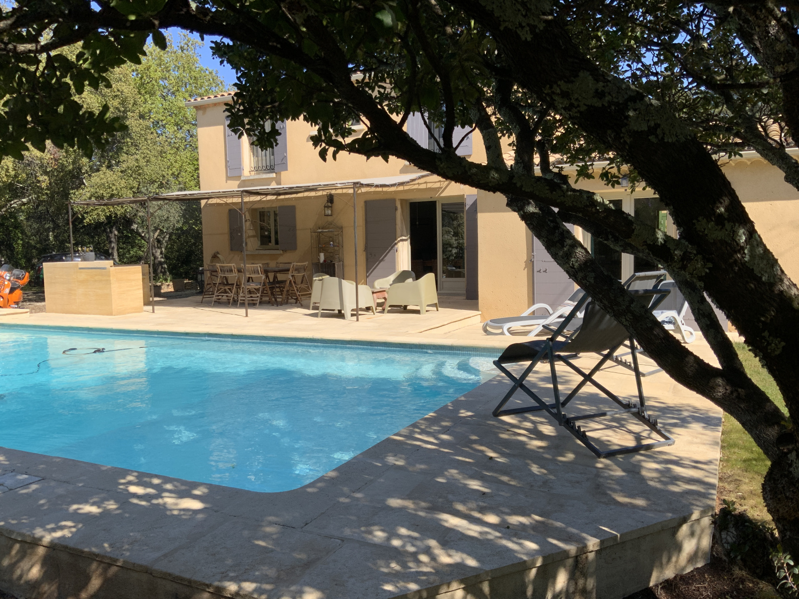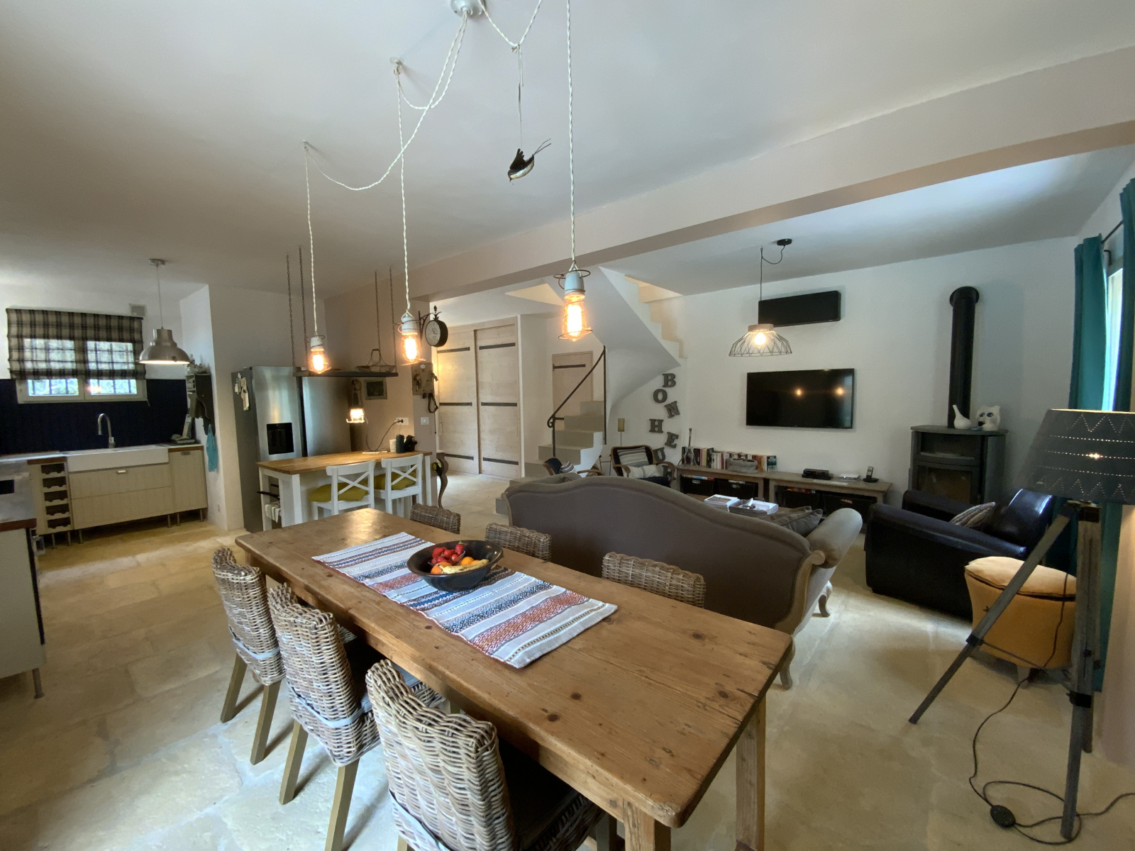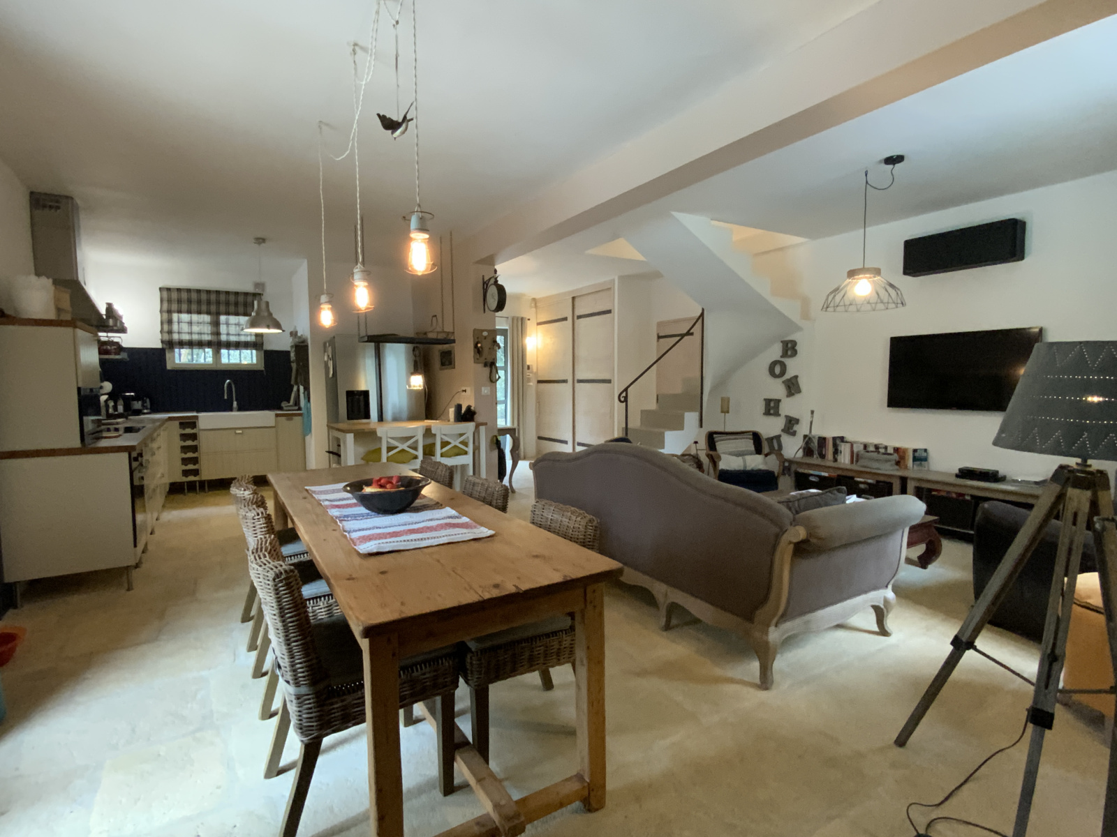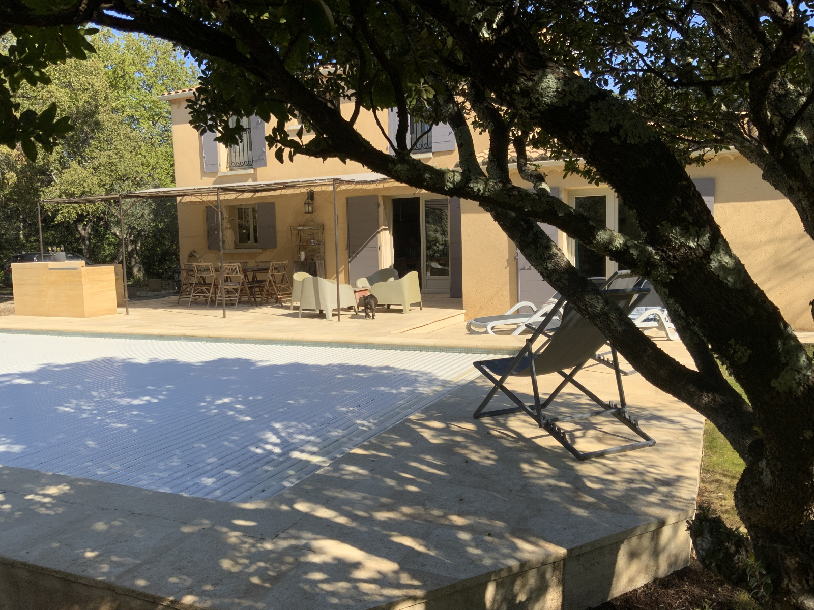 En exclusivité, dans un village recherché de l'Uzège l'Agence Sindy Micots Immobilier vous propose dans un environnement agréable et au calme une bastide implantée sur un terrain arboré de 1680 m2 sans vis à vis avec piscine chauffée. Une large entrée vous amène sur l'espace de vie avec cuisine équipée ouverte, donnant sur une large terrasse avec vue sur la piscine. Une spacieuse suite parentale avec salle d'eau. A l'étage, 2 vastes chambres avec chacunes des rangements et qui se partagent une salle d'eau. A l'exterieur, vous bénéficierez de 2 garages. Coin plancha au bord de la piscine. Nombreuses prestations : Climatisation réversible , poêle à bois, portail automatique. Materiaux de qualité. Retrouver plus de détails sur notre site internet.