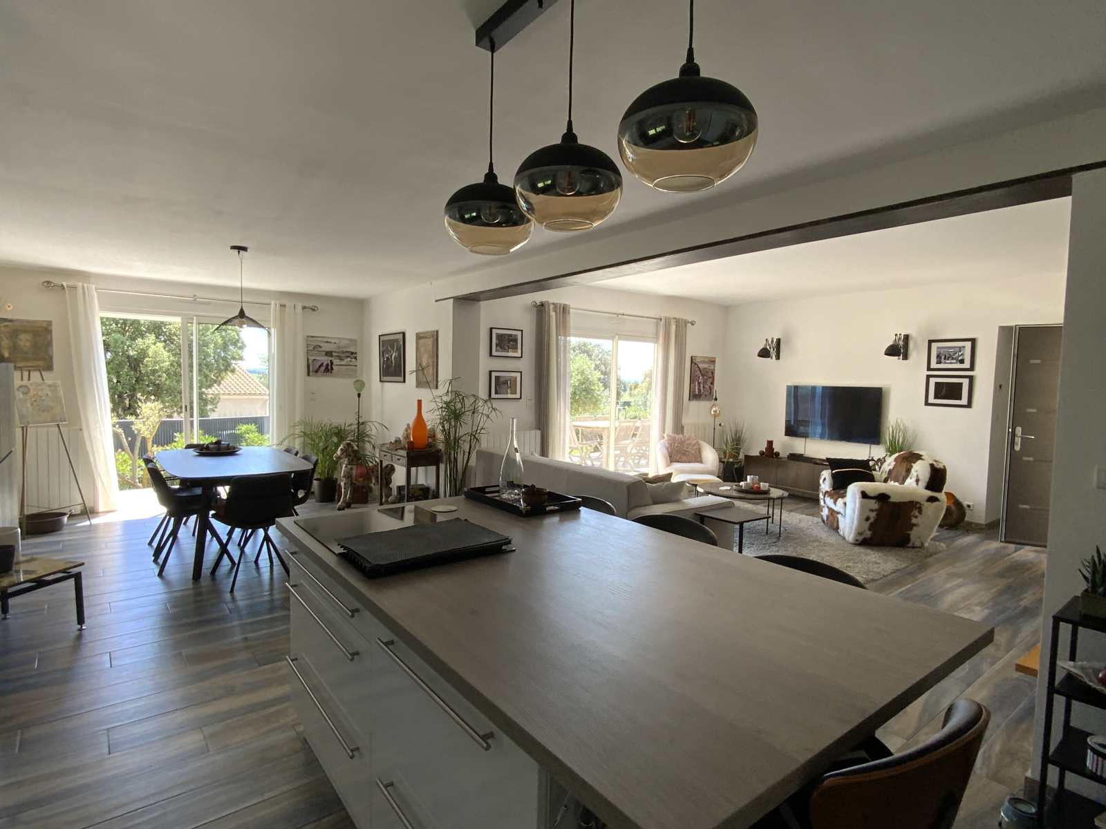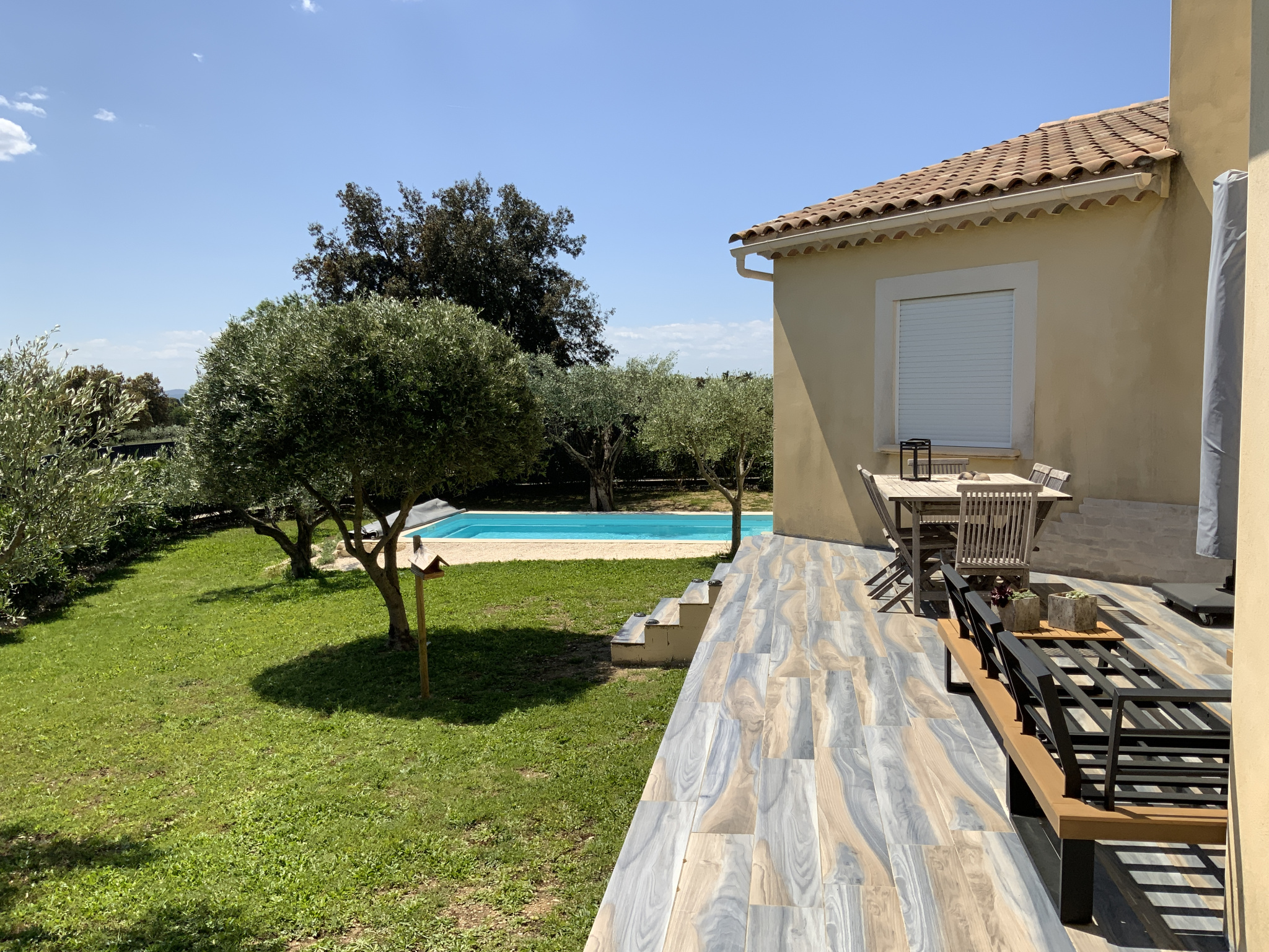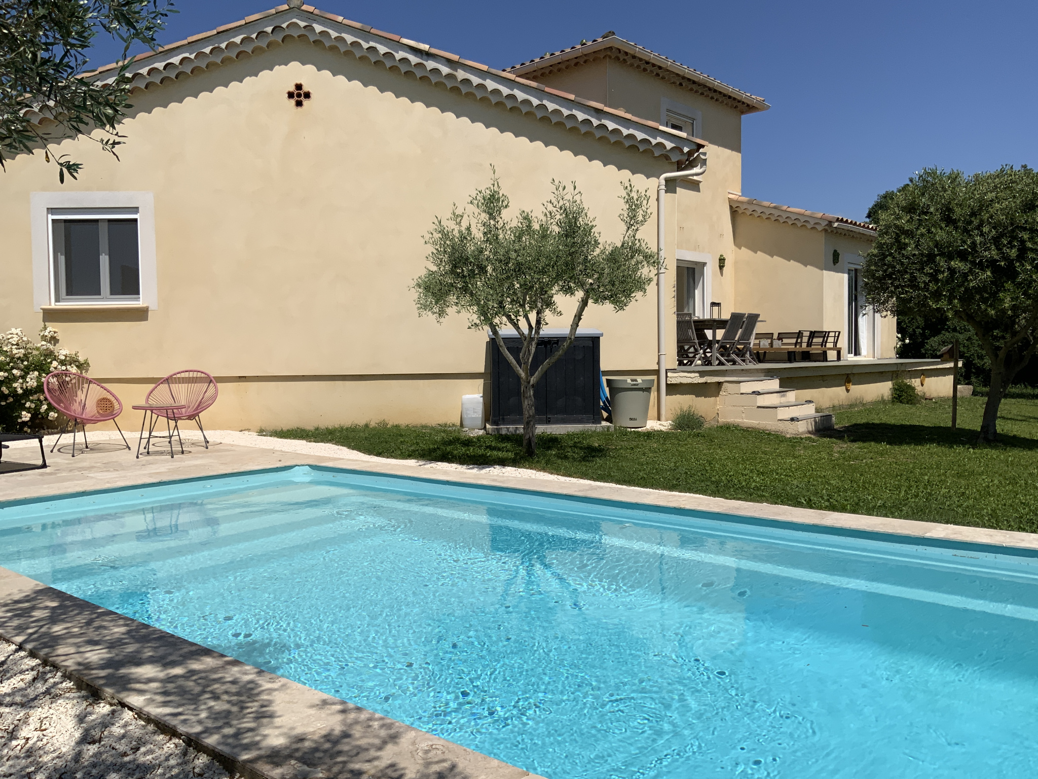 A 10 minutes d'Uzès, dans un village avec commerces de proximité, l'agence Sindy Micots Immobilier vous propose une villa de près de 150 m2 sur un terrain arboré avec piscine chauffée de 1300 m2. Elle offre une lumineuse pièce de vie plein sud de 55 m2 avec cuisine équipée. Pour la partie nuit, on retouve 2chambres confortables par leur taille de 15 et 16 m2 qui se partagent une salle d'eau et également une suite parentale avec entrée indépendante.. Au 1er étage, une chambre de 20 m2 avec jolie vue. A l'exterieur un garage de 20 m2. Double vitrage, portail automatique, pompe à chaleur, alarme..