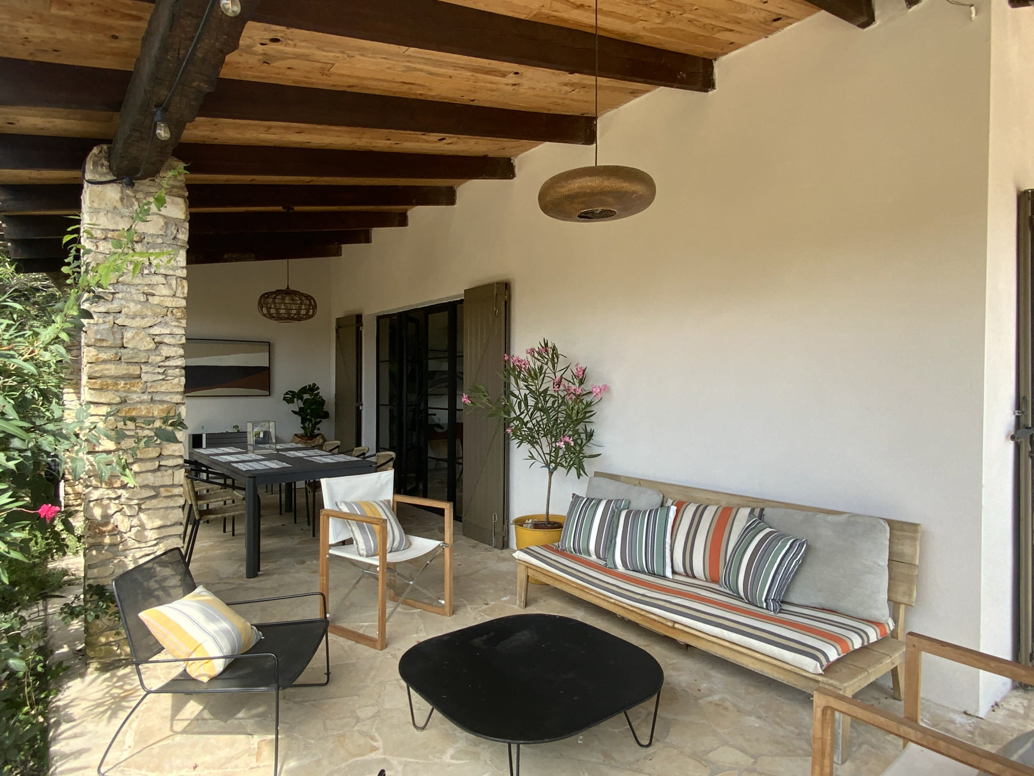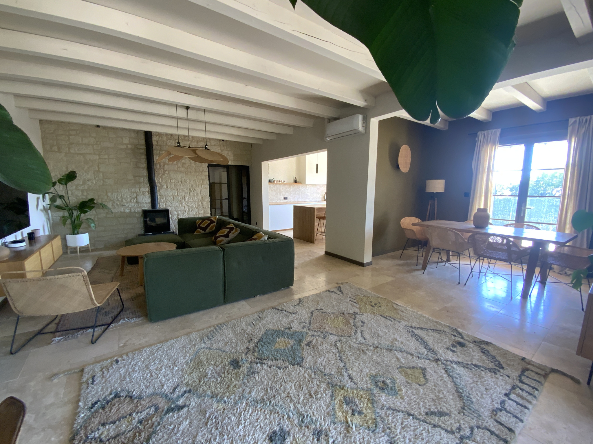 Dans un village recherché à quelques minutes d'Uzès, l'agence Sindy Micots Immobilier vous propose une villa de plain pied entirement rénovée sur un terrain de près de 1250 m2 avec piscine. L'espace de vie représente environ 60 m2 avec double exposition et accès direct sur la terrasse.3 belles chambres et 2 salles de bains.Une buanderie entièrment aménagée. Cette villa bénéficie également d'un appartement de 36 m2 indépendant avec sa terrasse privative. Materiaux de qualité, poele à bois, climatisation réversible.