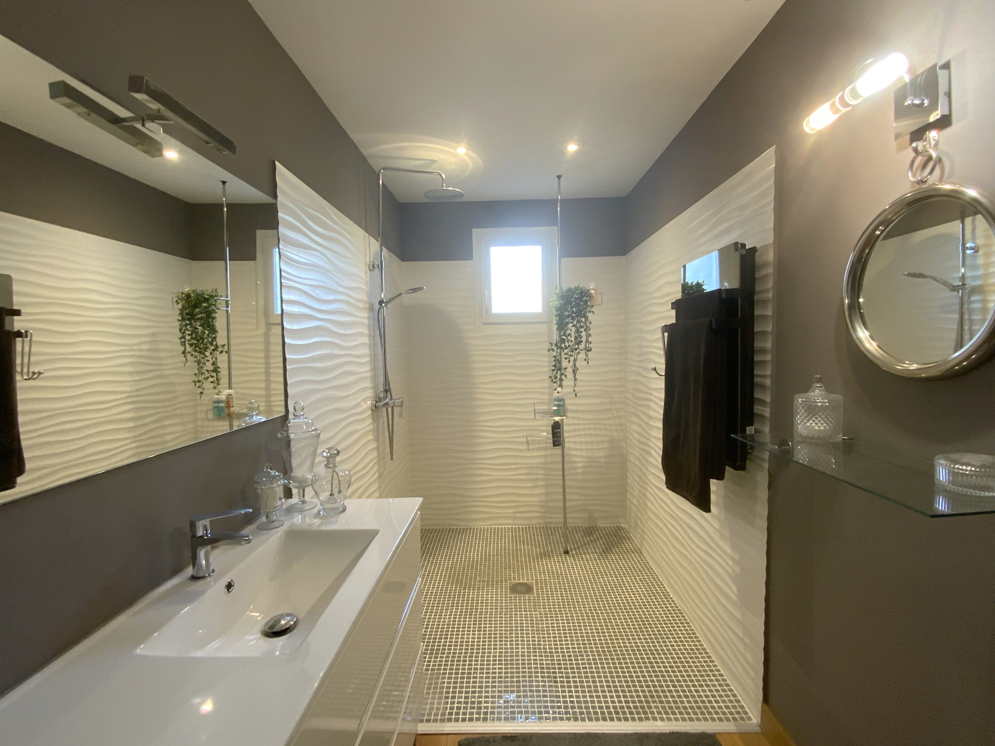 A quelques minutes d'Uzès, l'agence Sindy Micots Immobilier vous propose dans un environnement au calme et dans un village avec commodités, une villa cossue implantée sur un terrain de près de 1700 m2 paysagé avec piscine et pool house. Conçue de façon traditionnelle avec des materiaux de qualité, cette maison bénéficie de beaux volumes. En rez de chaussée, les espaces de vie perçoivent une lumière sud/est et un accés direct sur l'exterieur permet de profiter de belles terrasses. Une suite parentale composée d'un dressing et d'une salle d'eau, ainsi qu'un spacieux bureau. A l'étage, une chambre avec salle d'eau, ainsi qu'une grande salle de jeux, pouvant devenir une chambre. En empruntant un accès exterieur, un appartement indépendant d'environ 60m2. 2 garages, buanderie. Portail automatique, visiophone, fibre, pompe à chaleur,terrain de pétanque...