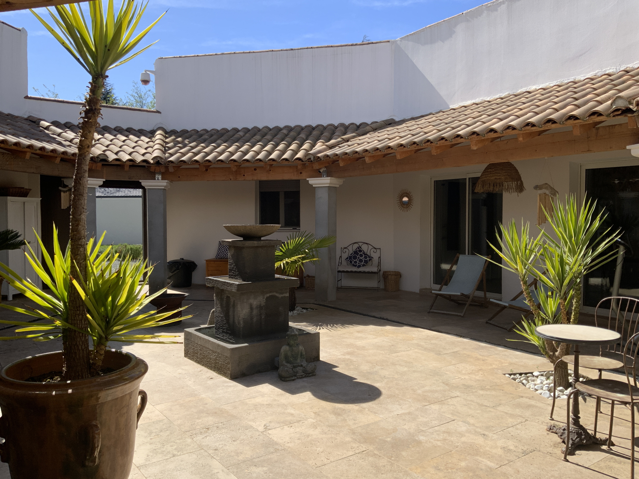 - Située dans un village disposant de commerces, à seulement 10 minutes d’Uzès, l’agence Sindy Micots Immobilier Uzès vous propose cette villa atypique de plain-pied d’une superficie de 168 m², organisée autour d’un patio central. Entièrement rénovée en 2023, cette propriété offre de beaux volumes, ainsi qu'une belle hauteur sous plafond. Vous découvrirez un espace de vie d’environ 70 m² comprenant une cuisine équipée avec îlot dinatoire, ouverte sur un salon et une salle à manger. Un second salon, agrémenté d’un poêle complète l’ensemble. La villa dispose également de quatre chambres dont une avec dressing. Implantée sur un terrain entièrement paysagé de 2 255 m², la propriété accueille une piscine tout aussi atypique, sublimée par une élégante plage en bois, créant un véritable espace dédié à la détente et à la convivialité. Une dépendance atenante et un terrain de pétanque. Un lieu calme et paisible, sans aucun vis à vis. Une belle rénovation avec des materiaux de qualité et un état irréprochable.