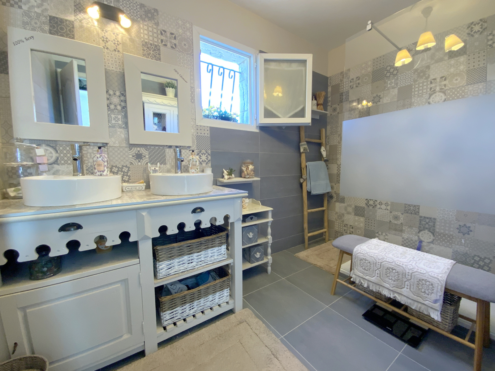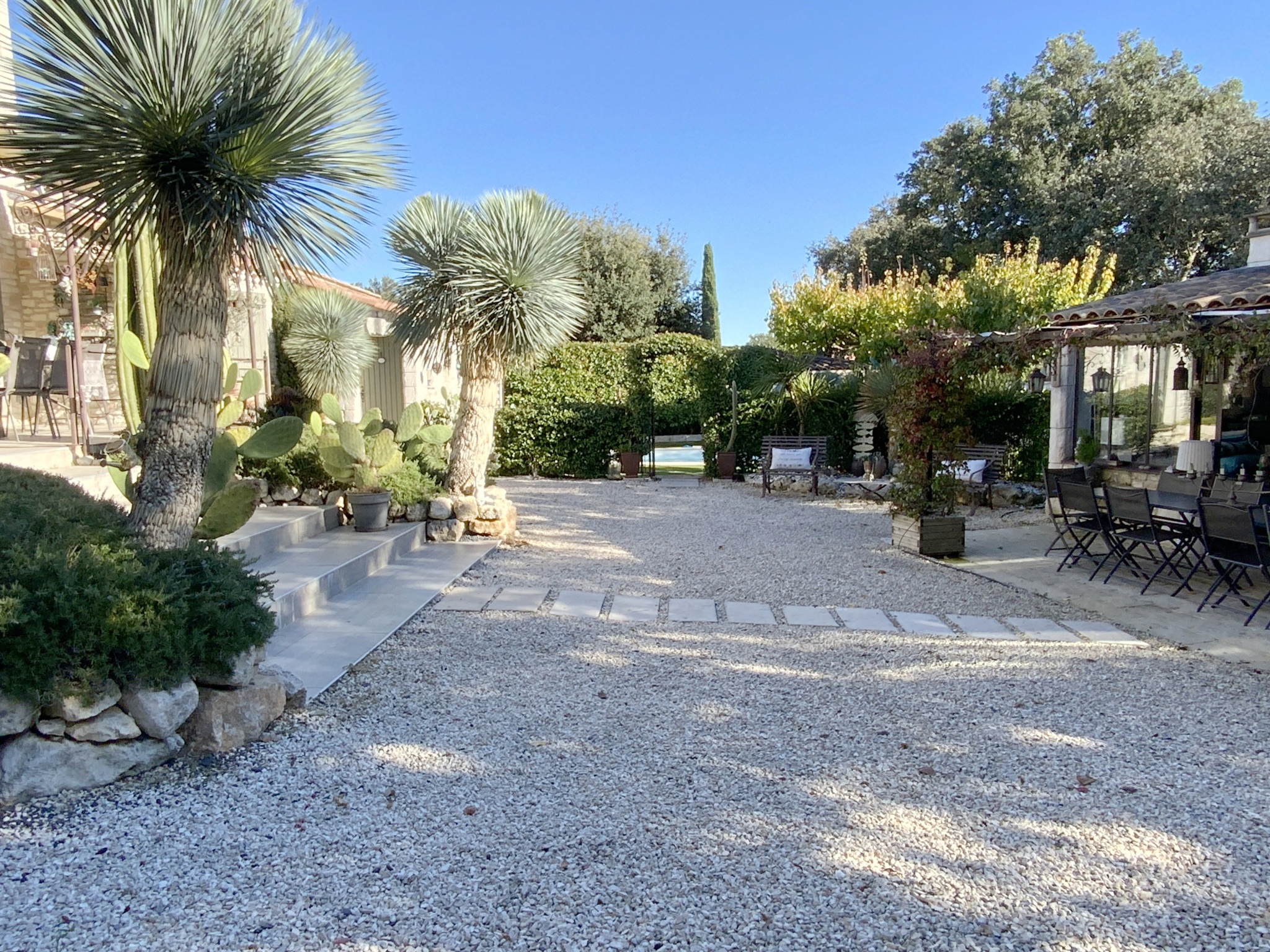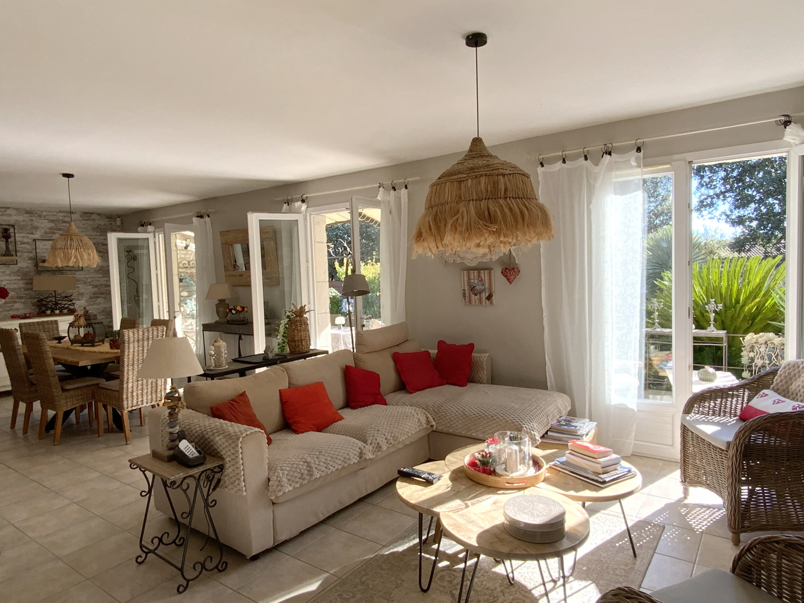 A 10 minutes d 'Uzès dans un village avec commodités, l'agence Sindy Micots Immobilier vous propose cette magnifique bastide implantée sur un terrain de 1200 m2 entièrement paysagé avec sa piscine de 8X4 et sa cuisine d'été entièrement équipée. En rez de chaussée, la villa accueille les pièces de vie ainsi qu'une chambre avec sa salle d'eau. A l'étage , 3 chambres avec placards qui se partagent une salle d'eau. Un bureau et un dressing indépendant. Pour compléter ce bien un garage de 20 m2. De nombreuses prestations ( climatisation, cheminée...) pour ce bien irréprochable dans un cadre enchanteur, au calme et sans vis à vis.
