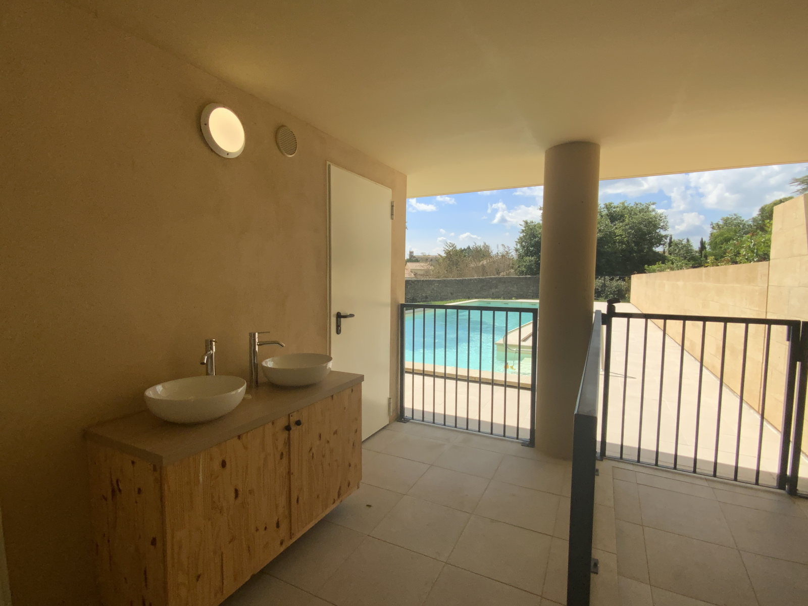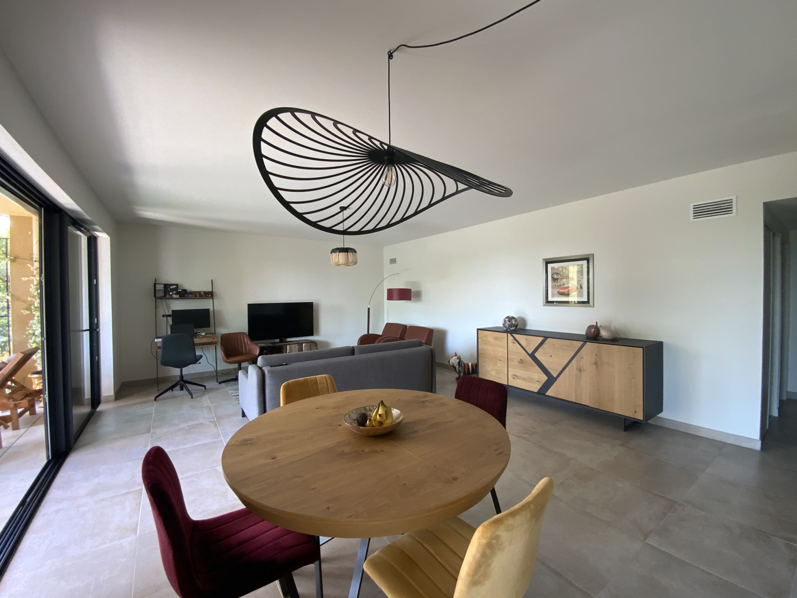 Uzès à pieds, l'agence Sindy Micots vous propose dans une résidence sécurisée avec piscine,un appartement traversant en 1er étage avec ascenseur. Il bénéficie d'un spacieux hall d'entrée avec placards, qui dessert un bel espace de vie entièrement tourné vers une large terrasse exterieure de 27 m2 et sa jolie vue sur la verdure. Cuisine équipée. Un espace nuit composé de 2 chambres avec placards. Une salle d'eau et 2 toilettes. En sous-sol 2 garages avec portes à ouvertures automatiques.Chauffage par climatisation réversible gainable. Batiment faible consommation, bornes électriques.Fibre. L' appartement est situé au calme.
